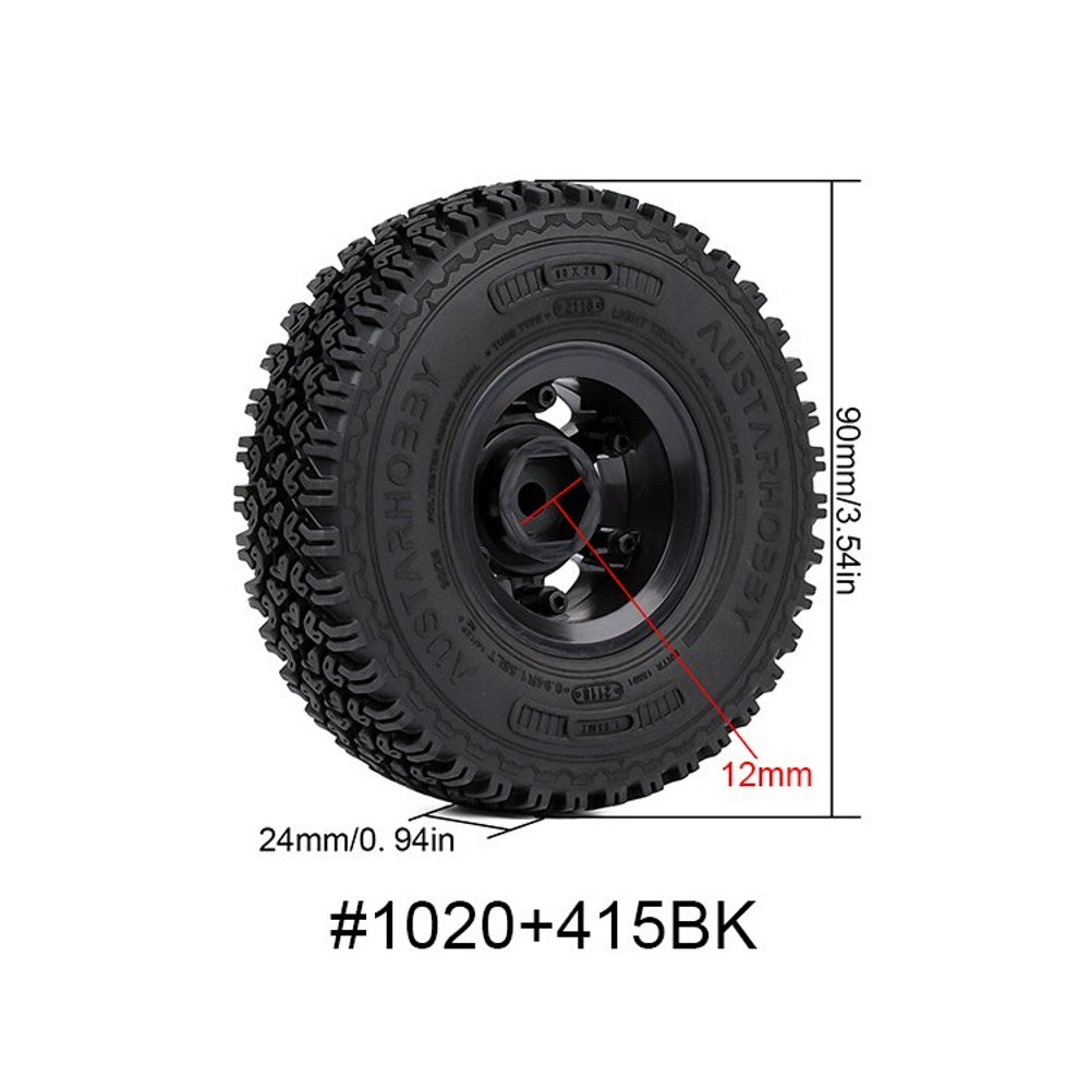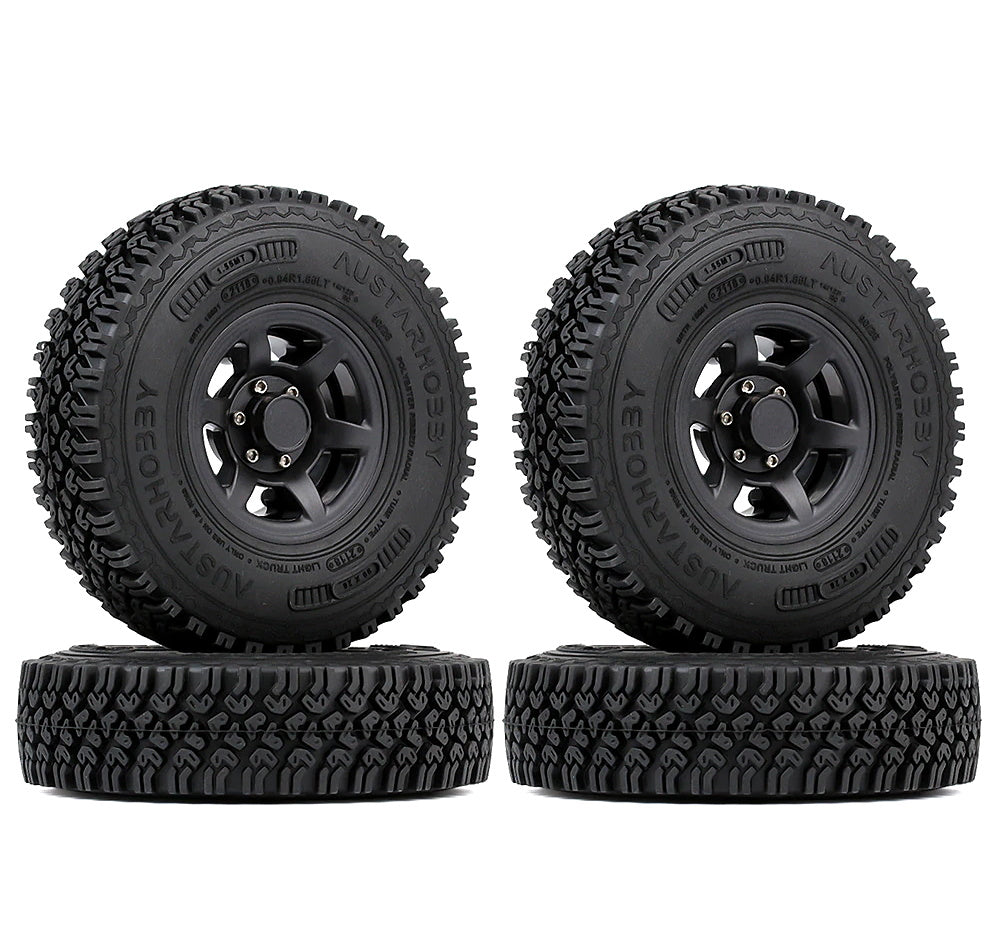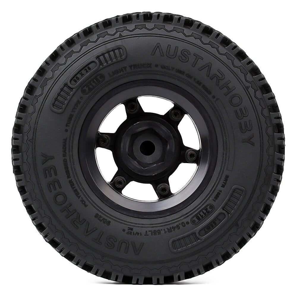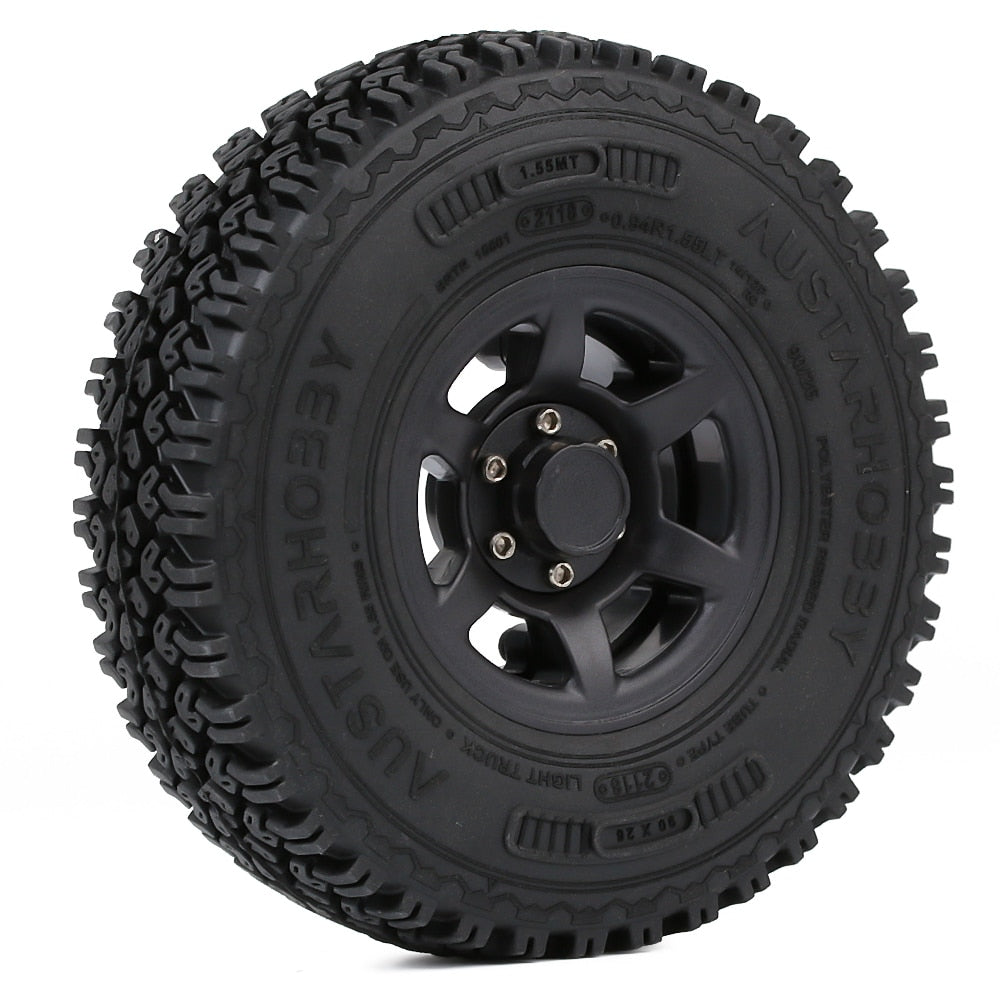 1.55 Beadlock Plastic Wheel Rim Tires for RC Crawler Car Axial AX90069 D90 TF2 Tamiya CC01 LC70 MST JIMNY - 4Pc Set Black