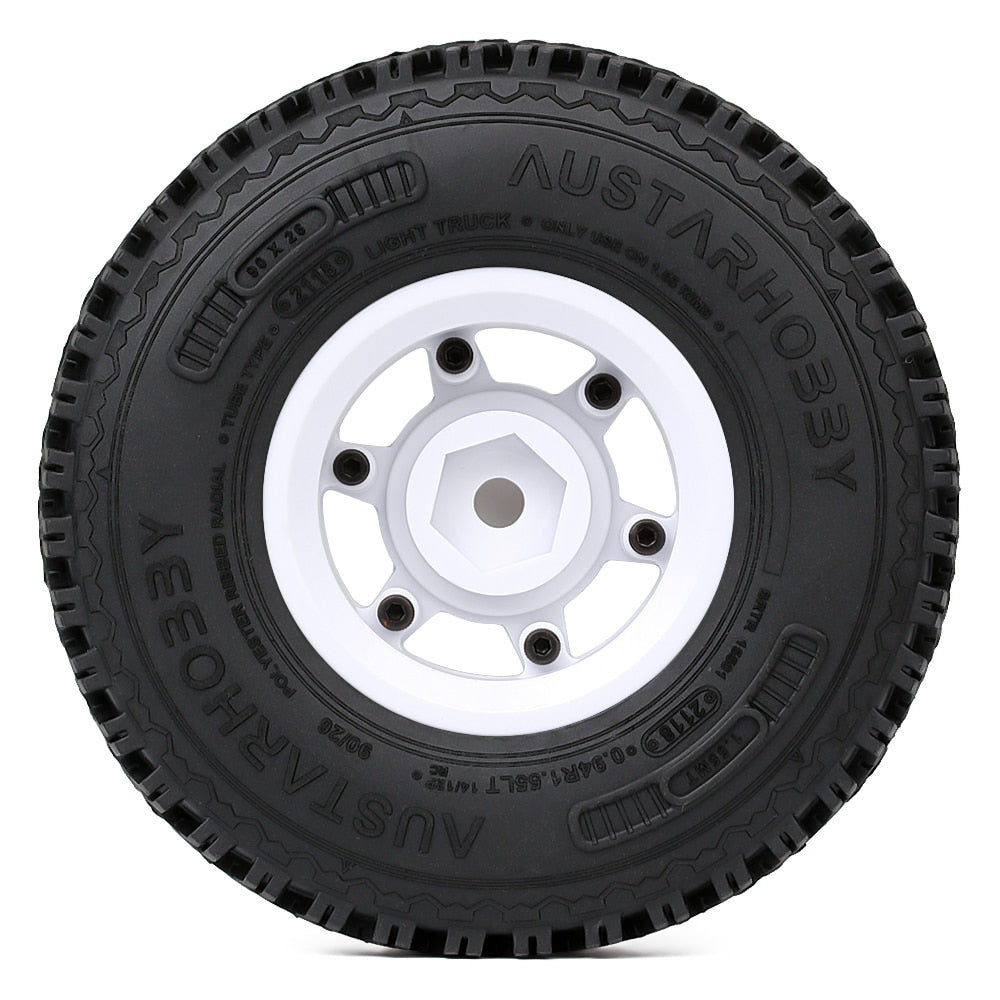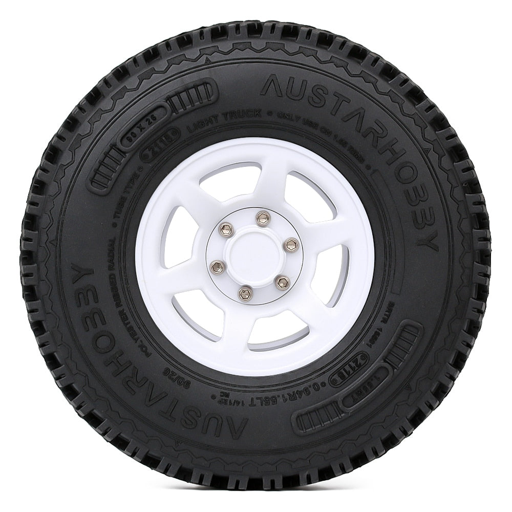 1.55 Beadlock Plastic Wheel Rim Tires for RC Crawler Car Axial AX90069 D90 TF2 Tamiya CC01 LC70 MST JIMNY - 4Pc White