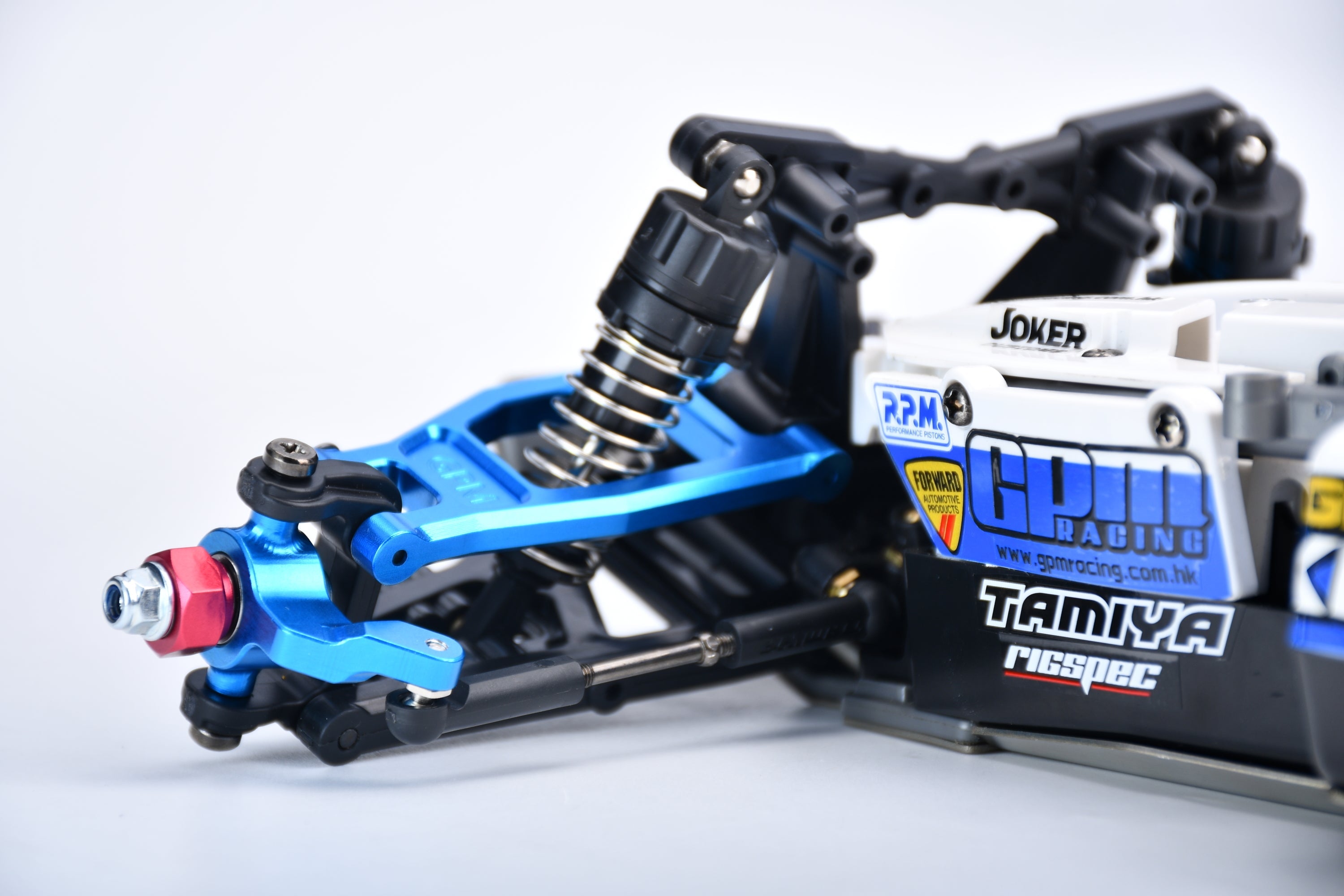• Multi-color anodized front upper suspension arm available in sky blue, black and silver.