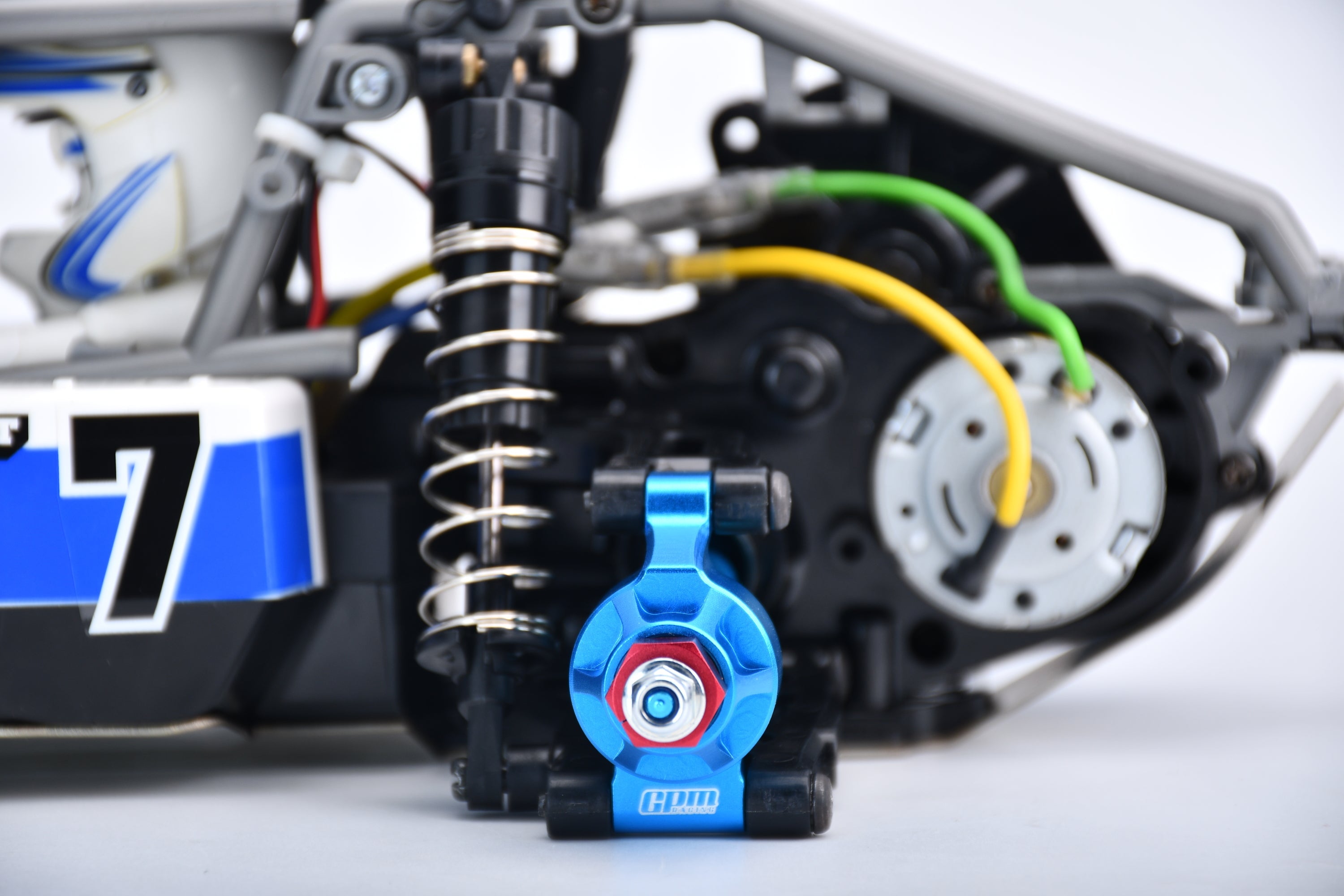 - Multi-color anodized front upper suspension arm available in sky blue, black and silver.