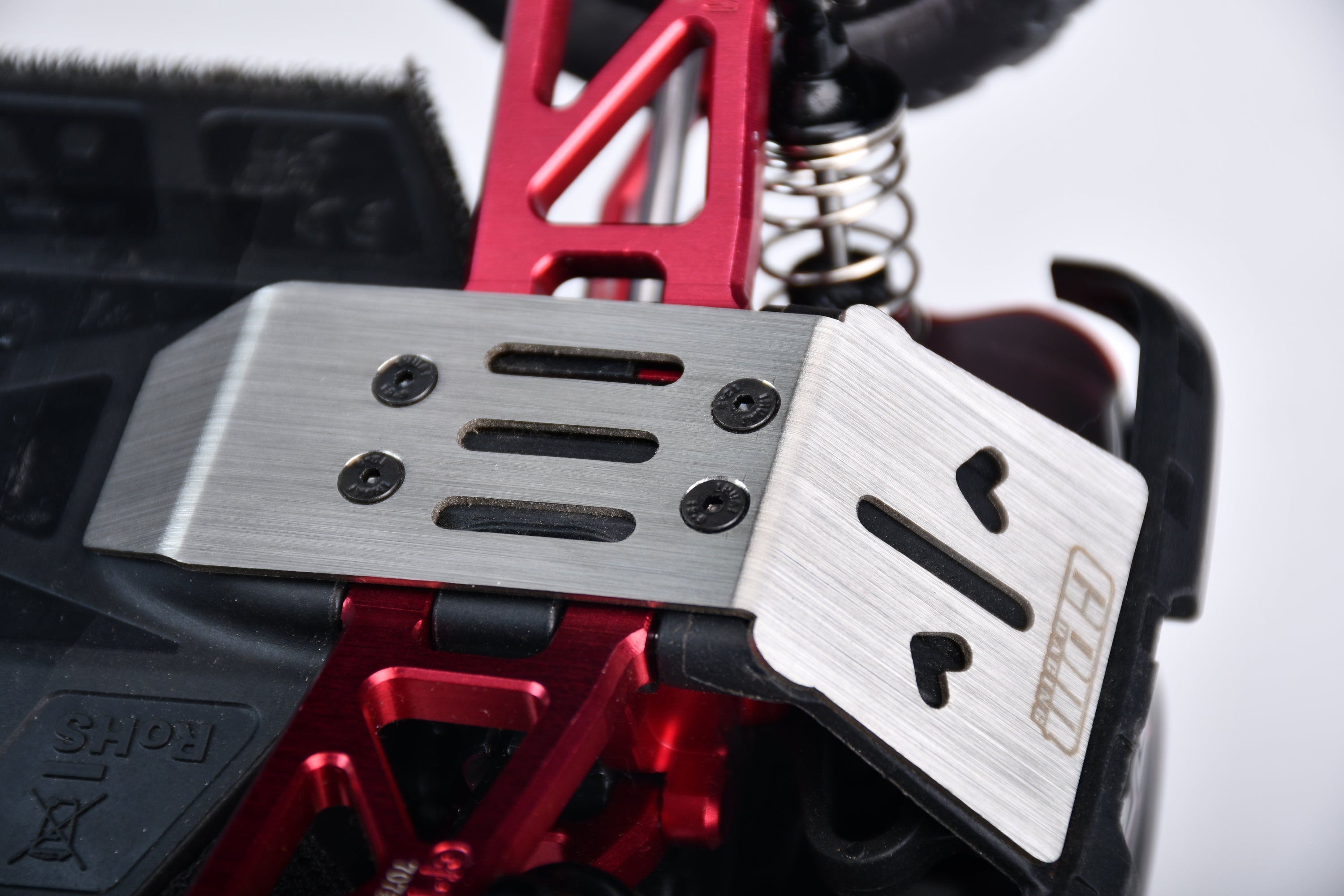 - Package includes : Front and rear chassis skid-2pcs ; Grade 12.9 black Flat Head Screws 2.5x8-8pcs.