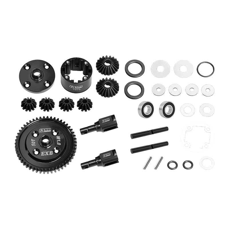 20CrMnTi Steel Main Gear 50T 1.0 + Aluminum 7075 Alloy Center Complete Differential For Arrma 1:8 KRATON 6S / OUTCAST / TALION / NOTORIOUS / 1:7 MOJAVE 6S / FIRETEAM / BIG ROCK - Black