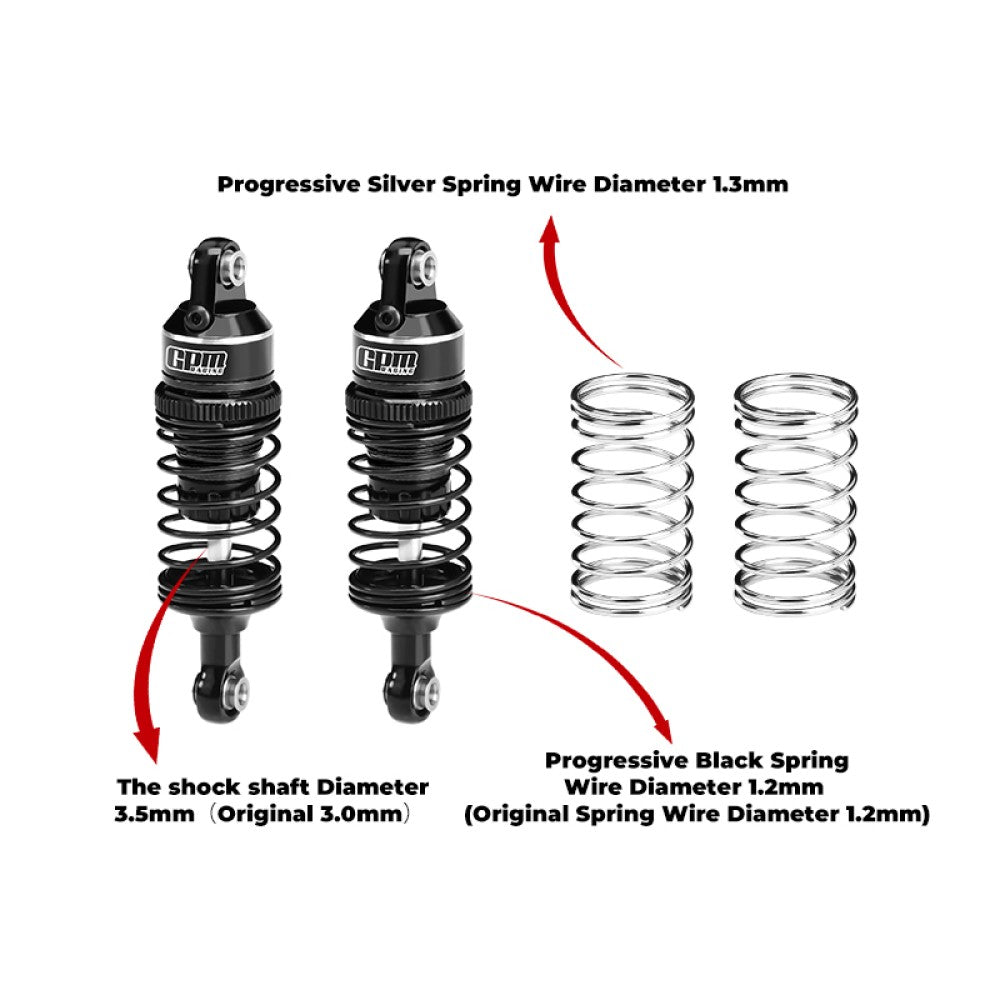 • Pre-installed black progressive spring of wire diameter 1.2mm. An additional silver progressive spring (1.3mm wire diameter) is provided and can be replaced according to your own needs. Progressive spring design, more dynamic adaptability, spring stiffness changes with load (soft first and then hard), can better adapt to different road conditions or load conditions.