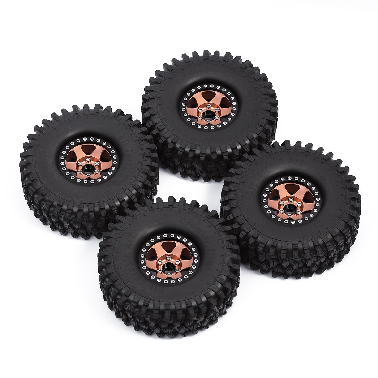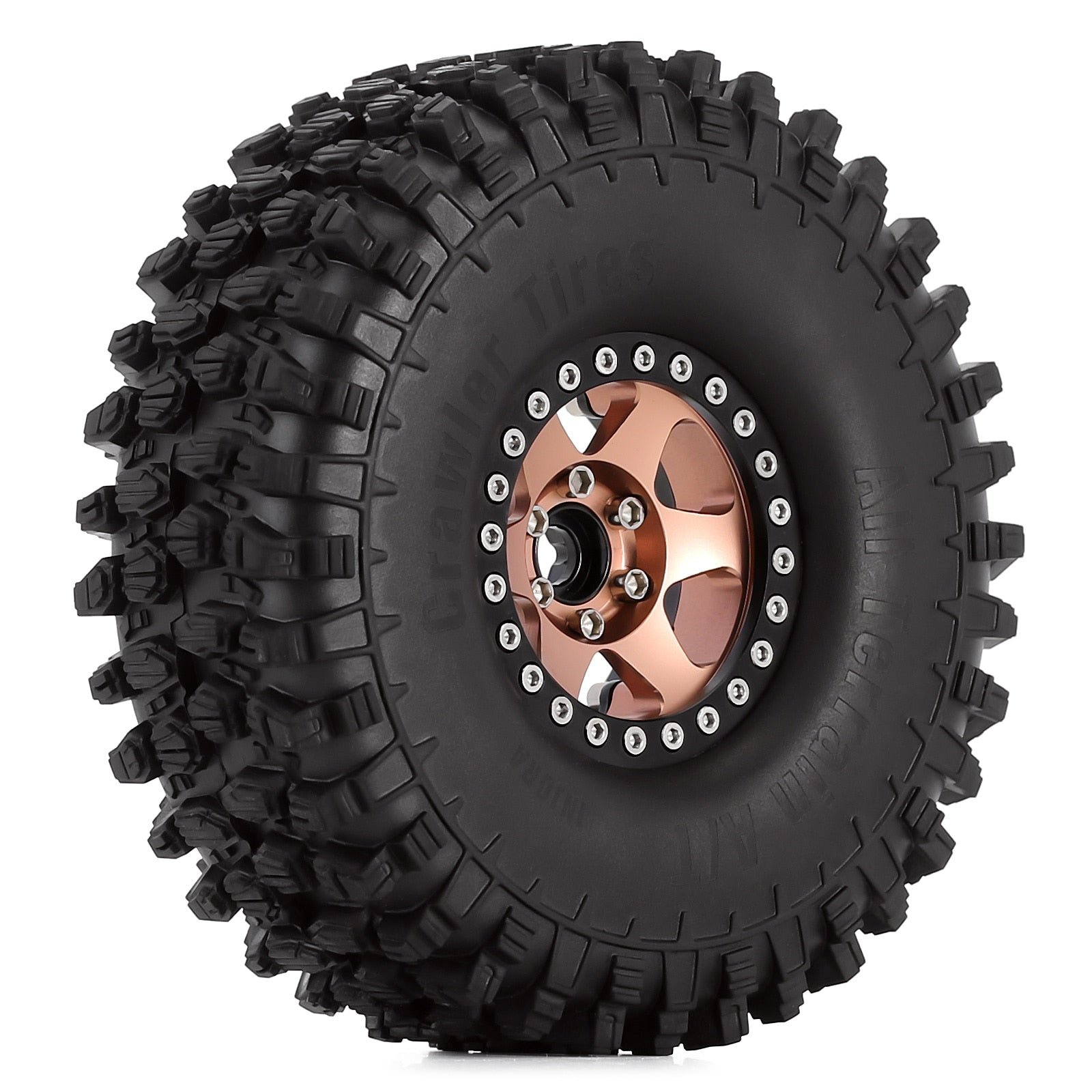 120*42mm 1.9" Wheel Rims Tires Set for 1:10 RC Rock Crawler Car Traxxas TRX4 Axial SCX10 90046 Redcat Gen8 - 4Pc Brown