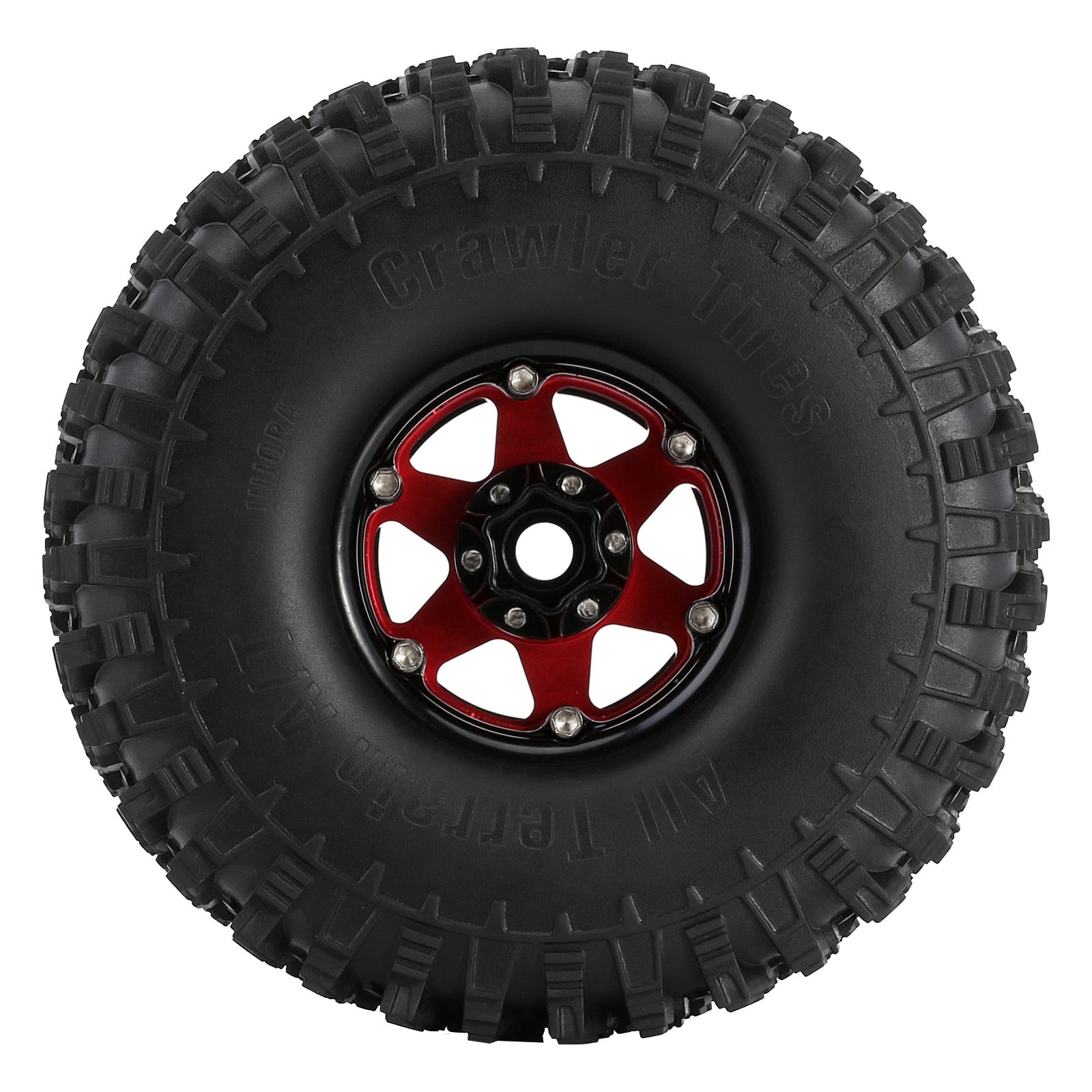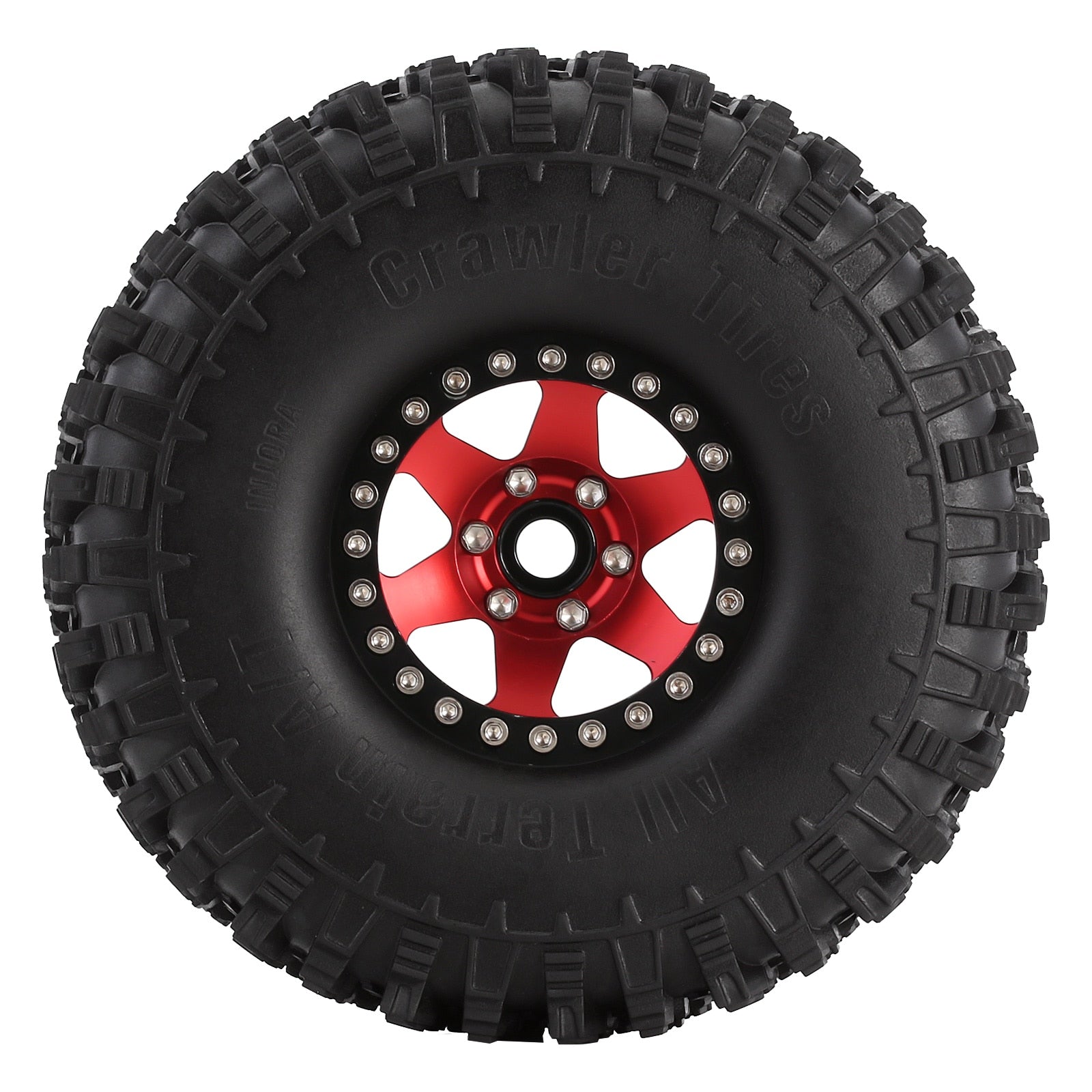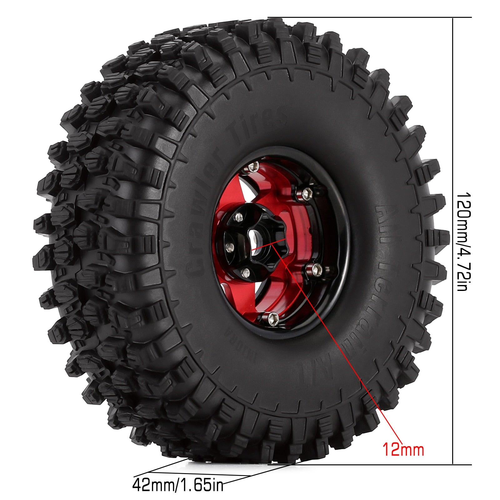 120*42mm 1.9" Wheel Rims Tires Set for 1:10 RC Rock Crawler Car Traxxas TRX4 Axial SCX10 90046 Redcat Gen8 - 4Pc Red