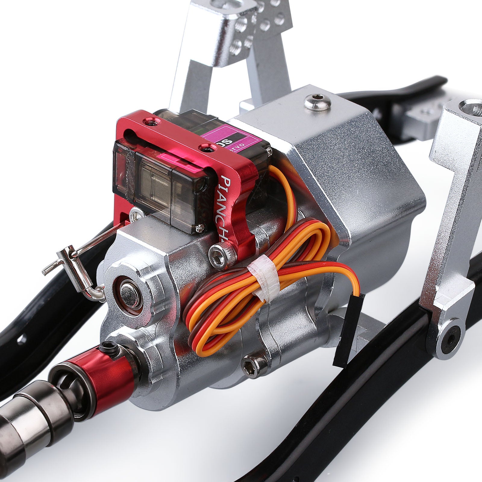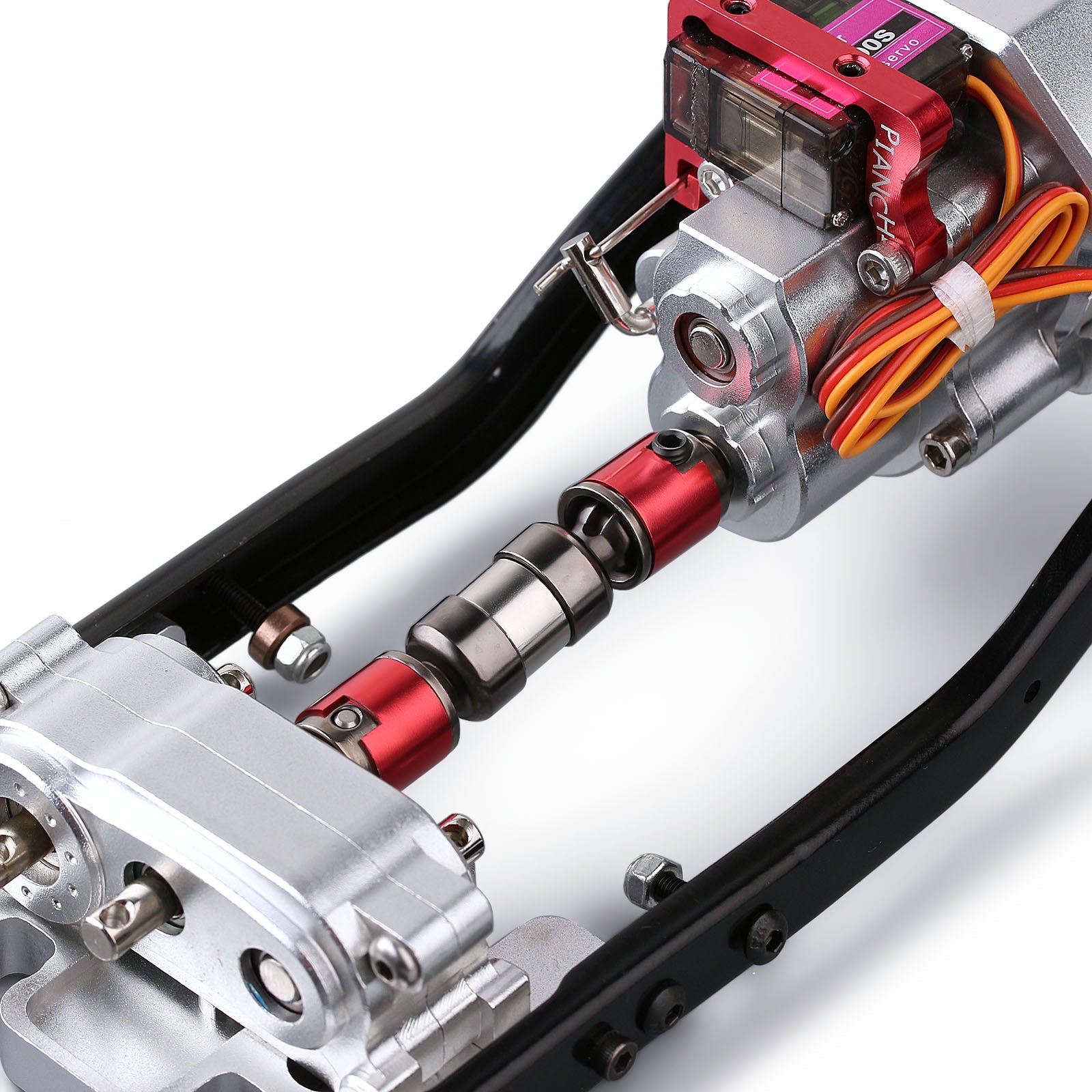 Using a 3-channel transmitter and a micro servo, you have control on demand. Shiftable transmission can be configured in one of two ways. Set it up for 2-speed using the high and low gears.