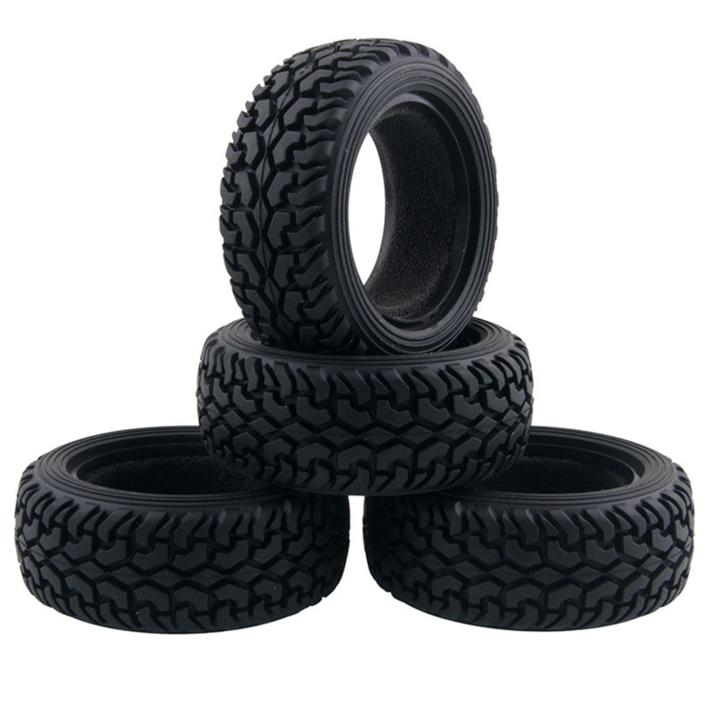 High Performance RC Rally Car Black Grain Rubber Tyre Wheel Tires for 1:10 On Road R/C Cars - 4Pc Set