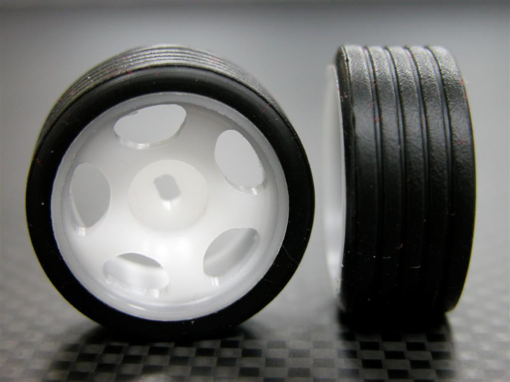 Kyosho Mini-Z AWD Delrin Rear Wide Ridge Rims (5P, 1.0mm Off Set, Width 11mm) With Tires - 1Pr Set White
