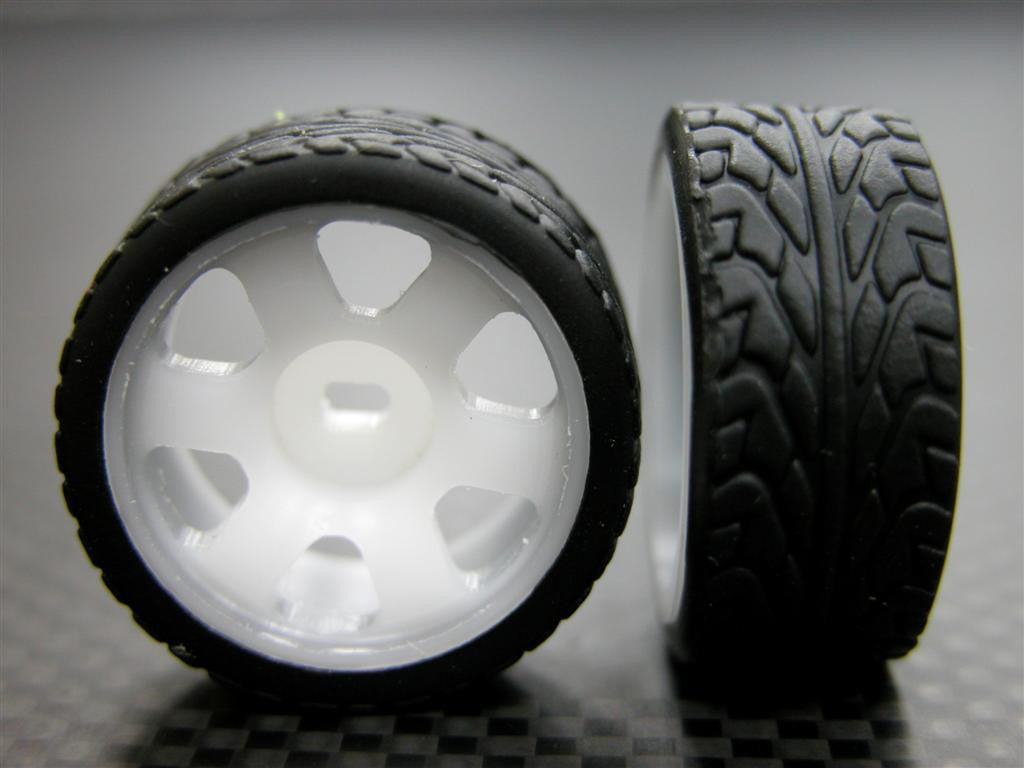 Kyosho Mini-Z AWD Delrin Rear Wide Ridge Rims (6P, 1.0mm Off Set, Width 11mm) With Tires - 1Pr Set White