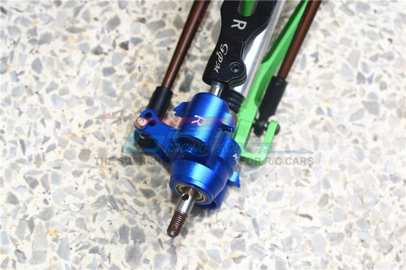 - Made from high quality aluminum 6061T6 with POM collars to minimize tolerance so that the bearing fits tightly into the knuckle arm for accurate turning, and to protect the bearing from falling off due to friction. Lock nut material upgraded to Delrin for greater durability. Multiple positioning holes for adjusting the tie rod and knuckle arm angles to suit different drive modes.