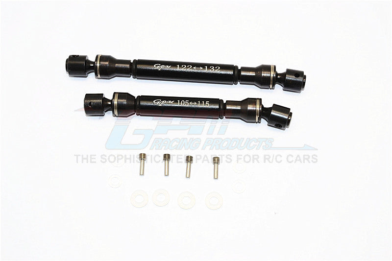 Gmade Crawler R1 Rock Buggy Steel+Aluminum Front & Rear Main Drive Shaft (F:122mm-132mm, R:105mm-115mm) - 2Pcs Set Black
