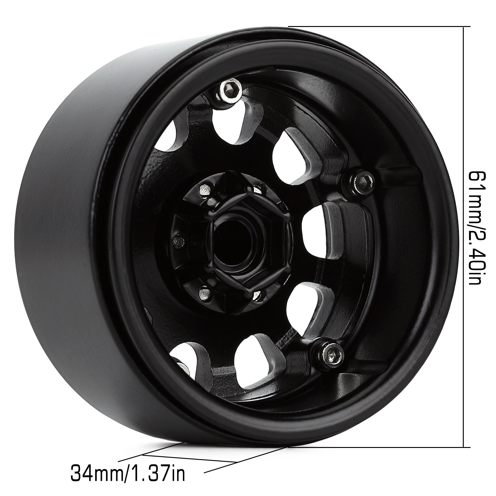 Heavy 2.2" Beadlock Metal Wheel Rim 249g/pc for 1/10 RC Crawler Car Axial SCX10 90046 Wraith RR10 Traxxas TRX-6 - 4Pc Black