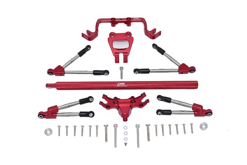 Aluminum Front & Rear Tie Rods With Stabilizer + Center Brace Bar & Mount For 1/10 Traxxas HOSS 4X4 VXL 90076-4 - 31Pc Set Red