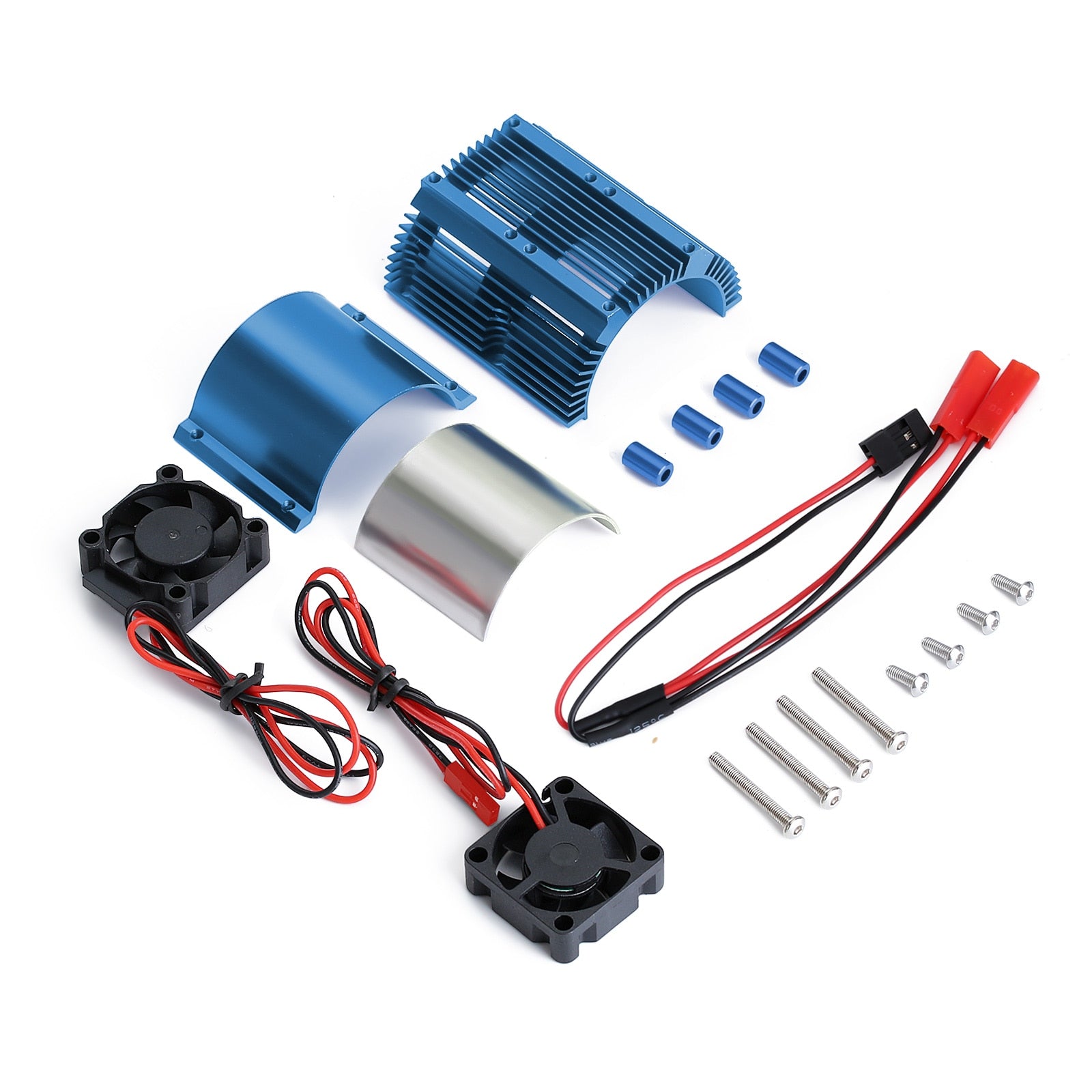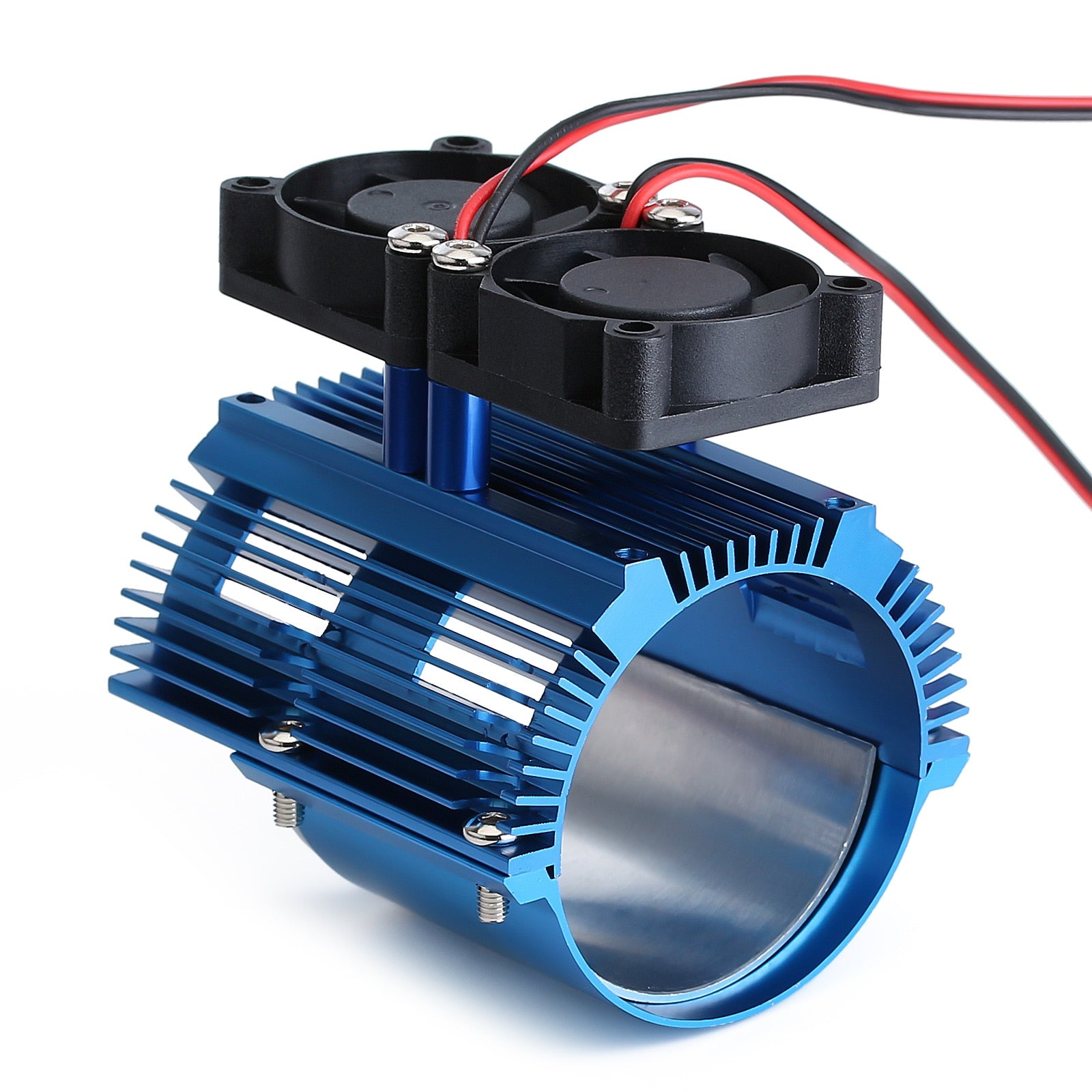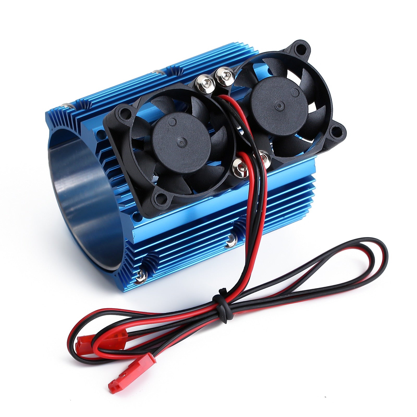 Metal Dual Fan 41-43mm Motor Radiator Heat Sink for 1/8 RC Car Monster Truck Traxxas SUMMIT E-REVO - 1 Set Blue
