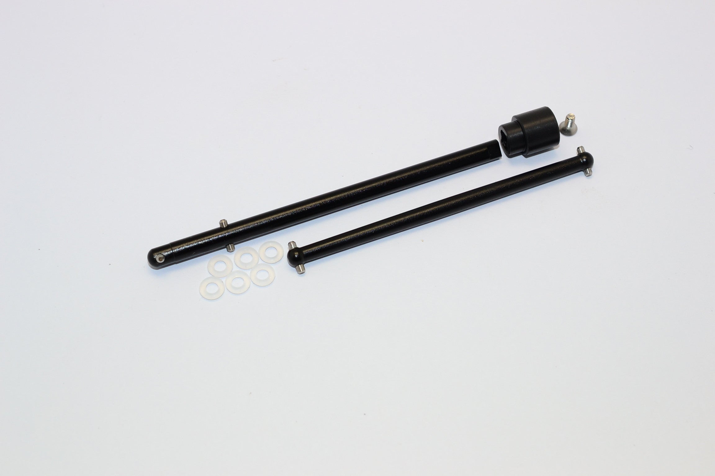 • Product Name : Aluminum Front+Rear Main Shaft Dogbone Design With Delrin Wheel Joint - 1 Set