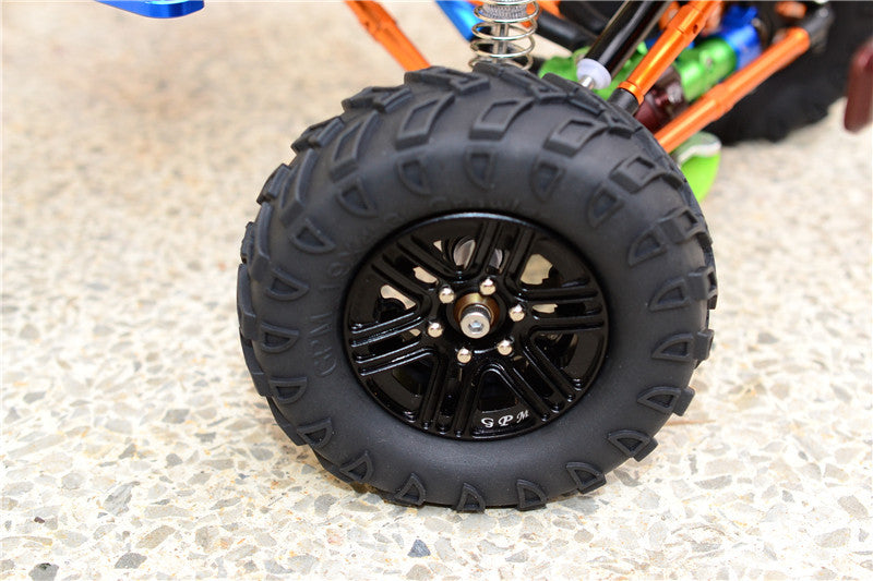 - Alloy and nylon plastic frame combination, strong and light. Simulation of the real rock crawler's wheel design with silver flashing hexagonal screws.