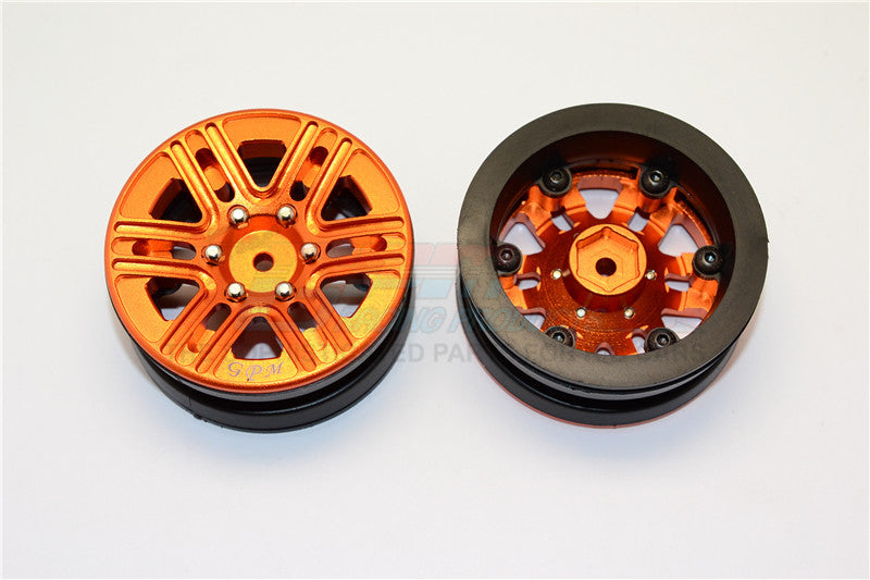 6 Spoke Mag Simulation Wheels In Silver Screws With 1.9" Aluminum Rim - 1Pr Orange