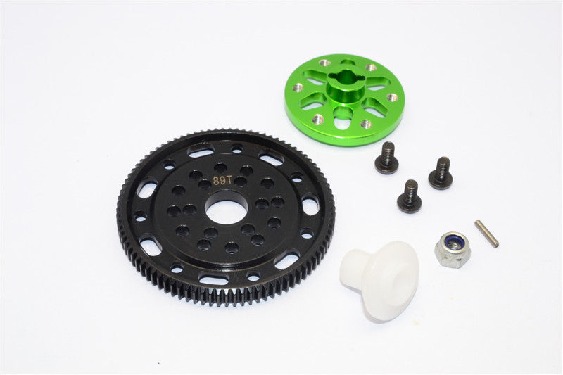 Axial SCX10 & Wraith Steel #45 Spur Gear 48 Pitch 89T + Aluminum Spur Gear Adapter - 1 Set Green