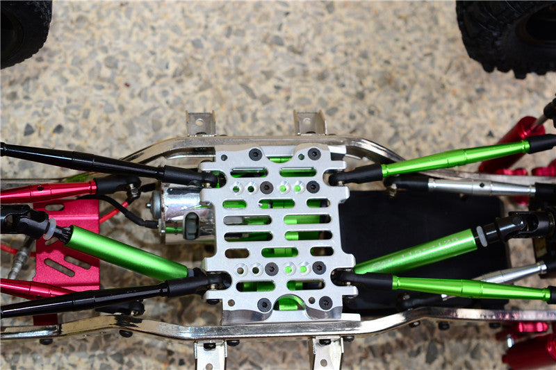 - Made by harden steel #45 universal swing shafts cross head design with aluminum shaft body. These shafts are light weight, durable, and greatly improve steering and crawling angles. Silicone o-rings are added onto the shafts to prevent direct touch of the head and the body. The shaft head is specially measured and has a pin lock to prevent loose or falling apart during crawling up and down. Front and rear shafts adjustable range is 115-125mm.