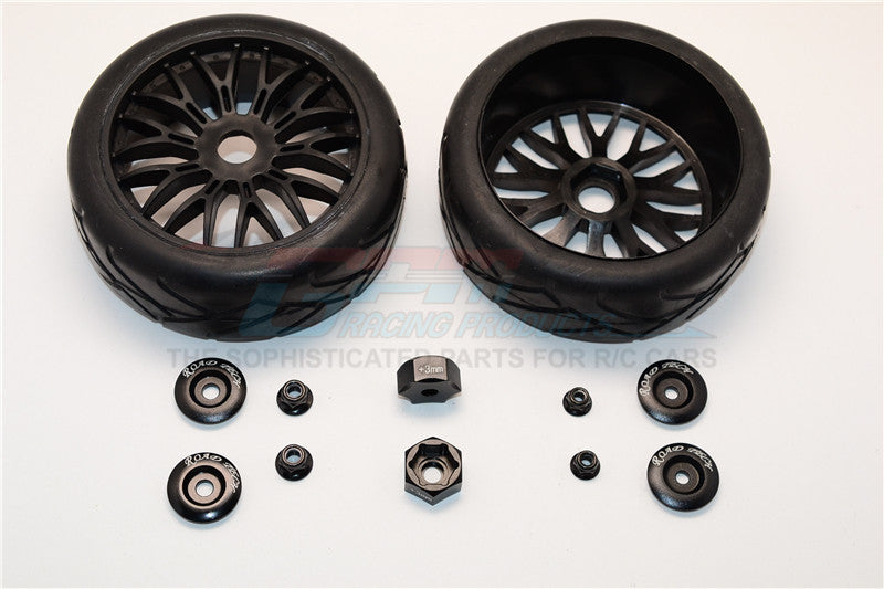 Rubber Radial Tires With Plastic Wheels With 12mm To 17mm Converter, 4mm & 5mm Wheel Lock - 2Pcs Set Black