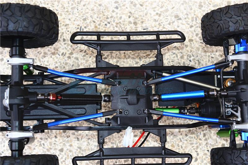 - Chassis support rods with unique bent design improves the car handling when driving through rough road with sand and rocks. Bent angle: 21 degrees.